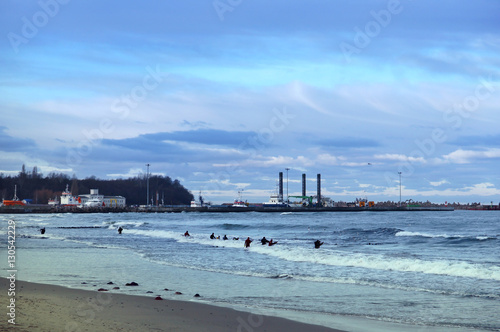 Sea waves. Cloudy weather. Baltic sea. Clouds in the sky.