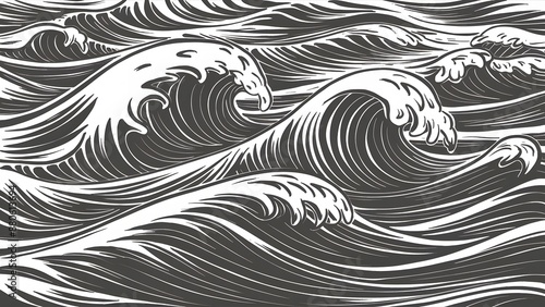 Sea waves sketch pattern. Ocean surf wave hand-drawn horizontal seamless pattern vector illustration