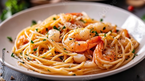 pasta, food, spaghetti, meal, italian, plate, dish, sauce, dinner, cookery, noodle, lunch, cheese, white, tomatoes, carbonara, seafood, delicious, epicure, shrimp, linguine, healthy, cooking, tasty, eat, cream