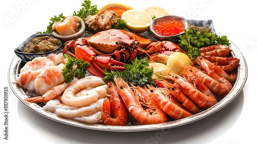 seafood, platter, shrimp, lobster, crab, oyster, caviar, lemon, herb, fresh, healthy, alimentary, balanced, epicure, premium, artisanal, indulgent, decadent, food photography, vibrant, colourful, exclusive, exquisite, epicurean, gourmand, epicure, special occasion, celebration, entertaining, hospitality, gastronomy, culinary arts, delicious, handcraft, luxurious, sophisticated, elegant, elevated, tempting, mouth-watering, irresistable, temptation, treat, natural, organic