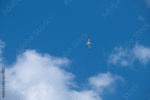 animal, blue, day, feather, flock of birds, flying, freedom, up high, hovering, innocence, journey, moving up, nature, one animal, planing, sea, seabird, seagull, sky, fly up, soaring, spreading, summer, sunny, travel, water bird, wind, background, white, air, wing, flight, fly