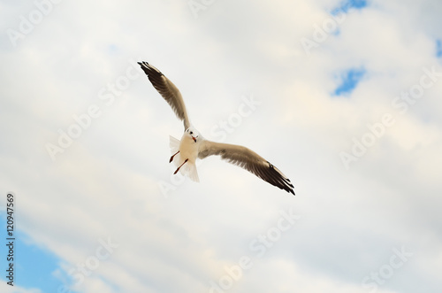 Seagull in the blue sky.