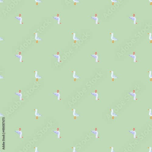 Seagulls standing seamless pattern. Background of sea birds.