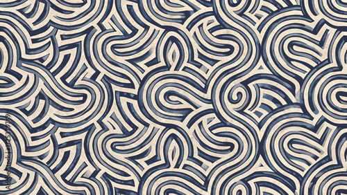 Seamless abstract line pattern hand-drawn labyrinth style curves fabric background