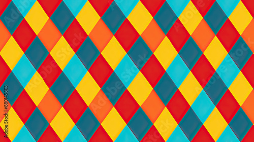 Seamless and bold argyle pattern in vibrant red, blue, and yellow, creating a playful look with bright lighting.