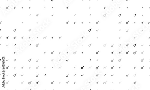 Seamless background pattern of evenly spaced black astrological connection symbols of different sizes and opacity. Illustration on transparent background