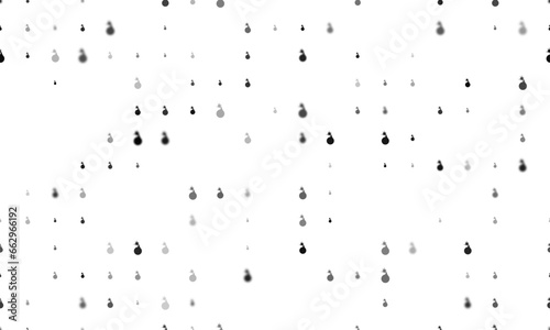 Seamless background pattern of evenly spaced black bomb symbols of different sizes and opacity. Vector illustration on white background