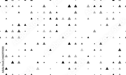Seamless background pattern of evenly spaced black cone symbols of different sizes and opacity. Illustration on transparent background