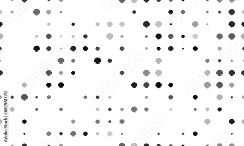 Seamless background pattern of evenly spaced black sea shell symbols of different sizes and opacity. Illustration on transparent background