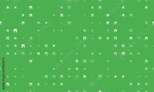 Seamless background pattern of evenly spaced white arch symbols of different sizes and opacity. Vector illustration on green background with stars