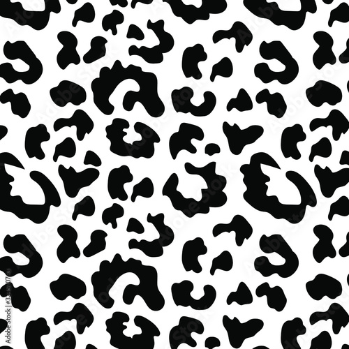 Seamless black and white leopard pattern. Vector illustration.