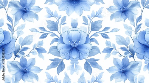 Seamless blue floral pattern on white background, ideal for textile, wallpaper and design projects