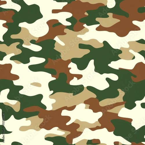 Seamless Camouflage Pattern with Green, Brown, Beige, and White Colors