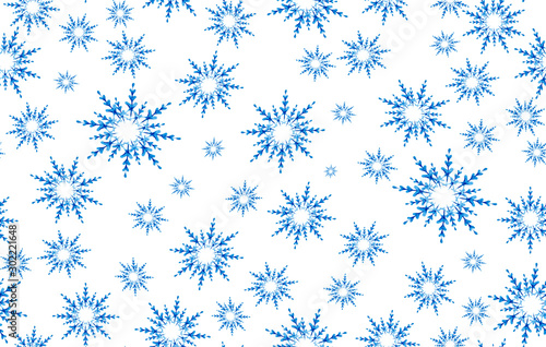 Seamless Christmas pattern with blue snowflakes. Background for holiday packaging, textiles or Wallpaper.