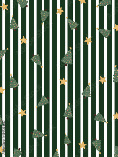 christmas, background, pattern, seamless, holiday, winter, green, white, stripes, striped, tree, pine, fir, spruce, star, gold, gold, festive, celebration, season, seasonal, decoration, decorative, textile, fabric, wrapping paper, wallpaper, print, minimal, cute, hand-drawn, illustration, merry, christmas, new year, card, invitation, greeting, vertical, forest, nature, geometric, repeating, texture, ornament, whimsical, traditional