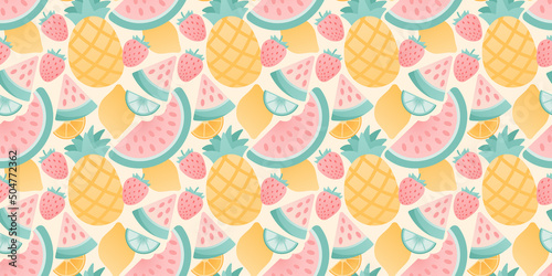 Seamless colorful tropical pattern with fruits and berries