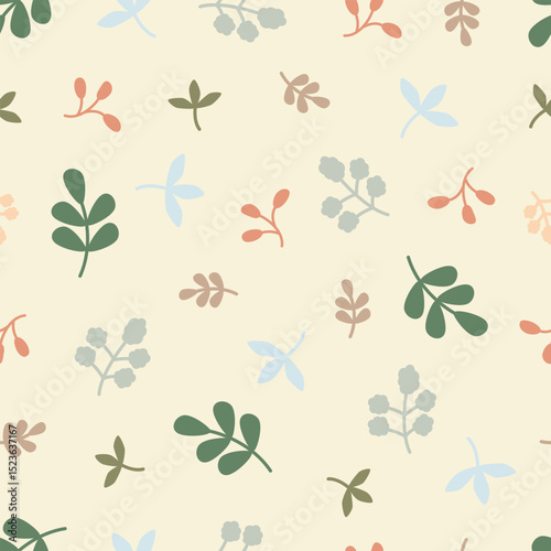 Seamless doodle leaves vector texture for summer and spring. Cute hand-drawn seamless pattern leaves the background. Doodle leaves branch for seasonal design, textile, and greeting cards.