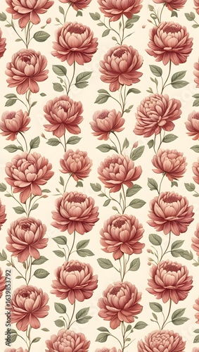 Seamless Dusty Rose Floral Pattern with Soft Green Leaves on Subtle Textured Background