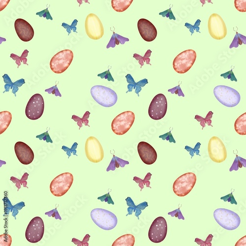 Seamless Easter pattern with eggs and butterflies