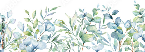 eucalyptus, watercolor, hand-painted, seamless, greenery, blooming, border, organic, floral, watercolor, illustration, background, natural, frame, decoration, element, ornate, plant, hand-drawn, garden, botanical, leaf, pattern