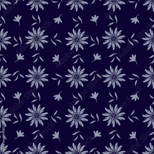 Seamless floral pattern, colorful ditsy print, abstract ornament in retro folk motif. Pretty decorative art botanical design of hand drawn large, small flowers, leaves, wild herbs. Vector illustration