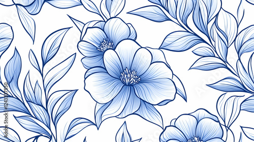 floral, pattern, design, seamless, blue, flower, leaf, background, white, graphic, wallpaper, textile, print, decorative, illustration, art, patterned, vector, vintage, elegant, abstract, seamless pattern, botanical, nature, soft, pastel, line, style, digital, modern, background, floral pattern, fabric, graphic design, repeat, background image, fashion