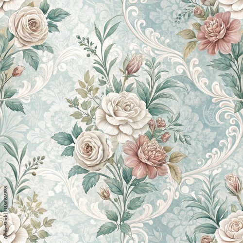 seamless, floral, pattern, digital, art, home, elegant, atmosphere, nostalgic, graceful, luxurious, visual, serene, simplicity, aesthetic, chic, unique, gentle, harmony, ornamental, lush, high-coloured, quality, inspiration, innovative, pastel, lovely, tranquil, vibrant, balance, warm, contemporary, cosy, ambience, embellishment, whimsical, enchanting, charming, exquisite, background