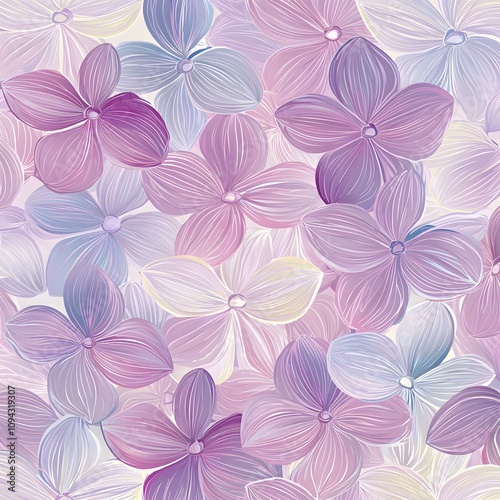 Seamless Floral Pattern of Thai Orchids in Lavender, Pink, and White with Intricate Petal Lines and Soft Shadows