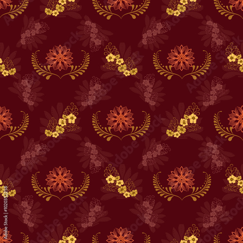 seamless floral pattern on vintage style , Motif ethnic floral seamless textil, embroidery, print striped ornament floral, pattern, design for wrapping, silk, scarf, background, textile