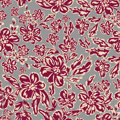 Seamless floral pattern with bright colorful flowers and leaves. Elegant template for fashion prints. Modern floral background. Fashionable folk style. Ethnic style. Boho.