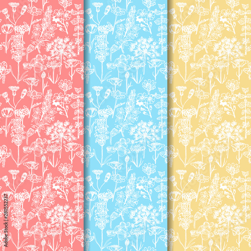 seamless, pattern, flower, floral, herb, bouquet, wildflower, wrapping, wallpaper, decoration, print, ornament, vector, graphic, fabric, coloured, illustration, decorative, texture, design, paper, art, style, background, textile