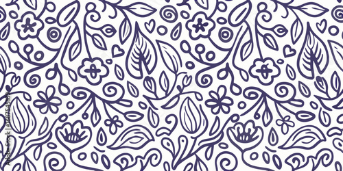 floral, pattern, hand, drawn, seamless, botanical, leaf, flower, swirl, outline, minimalist, vector, illustration, organic, nature, background, textile, design, wallpaper, scrapbooking, art, drawing, vignetting, decorative, simple, elegant, whimsical, cute, fabric