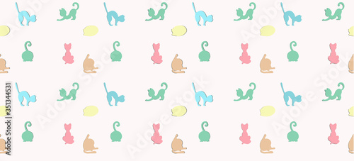 seamless, cat, cute, symbol, background, love, card, fun, letter, hand, art, paint, signs, white, yellow, green, pink, blue, decoration, colours, cartoon, character, pop, summer, taste, fur, dessert, sweet, pattern, posing, body, stealth, sleeping, playful, friends, pose, isolated, outline, kitten, group, silhouette, graphic, set, repeat, texture, childish, tail