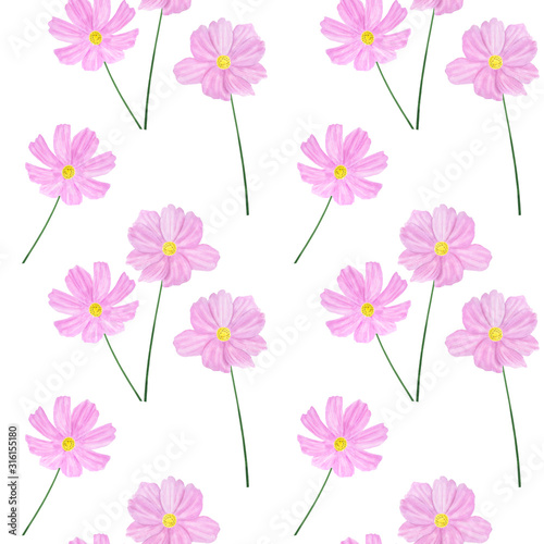 Seamless pattern Cosmea flowers watercolor botanical illustration