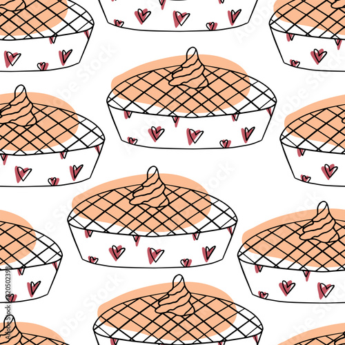 Seamless pattern Doodle pumpkin pie. autumn baking