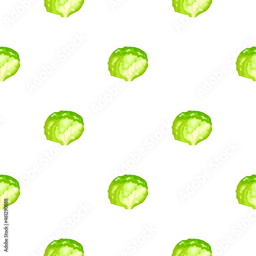 Seamless pattern iceberg salad on white background. Minimalism ornament with lettuce.