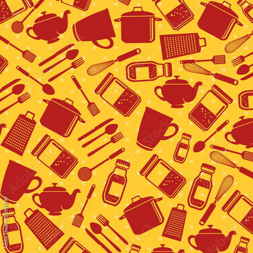 vector, kitchen, seamless, pattern, illustration, background, spoon, cooking, knife, food, eatery, utensil, design, fork, cook, icon, set, dinner, equipment, kitchen utensile, chef, symbol, pan, home, menu, pot, element, household, cutlery, isolated, retro, fabric, spatula, texture, wallpaper, vintage, hat, receipe, bowl, hot drink, cute, tool, cup, collection, doodle, grater