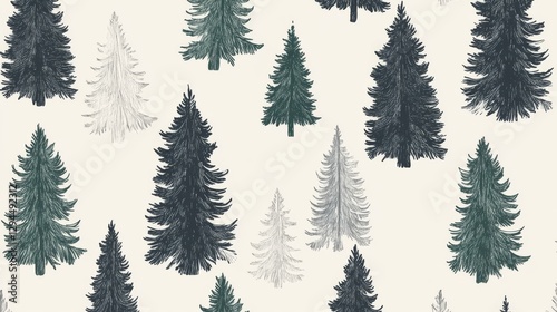 seamless, pattern, hand-drawn, evergreen, tree, background, off-white, forest, nature, pine, spruce, fir, illustration, art, abstract, foliage, botanical, green, monochrome, texture, wallpaper, decoration, vintage, retro, organic, natural, environmental, wood, wild, leaf, design, textile, print, repeat, decor, vignetting, hand-made, classic, beautiful, seasonal, winter, landscape, peaceful, harmonious, rustic