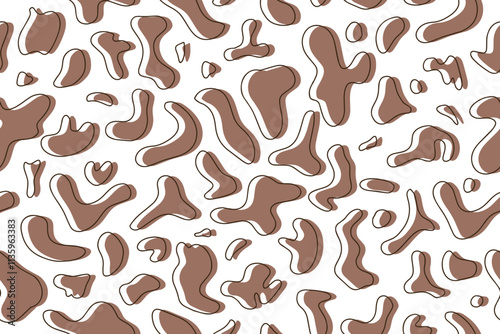 Seamless pattern of organic liquid stains of the color of the year 2025 Mocha Mousse. Abstract stains. Flat design, vector. White background