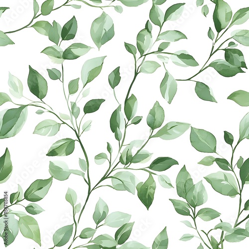 Seamless pattern of sage green vines gracefully sprawled across a crisp white background
