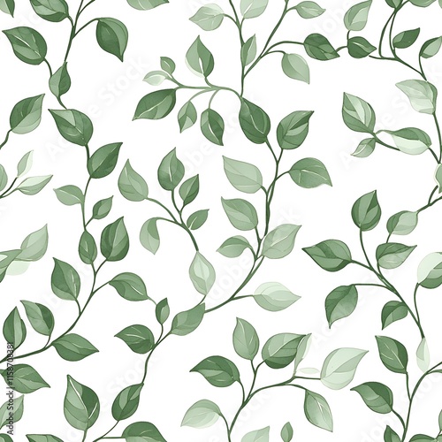 Seamless pattern of sage green vines gracefully sprawled across a crisp white background