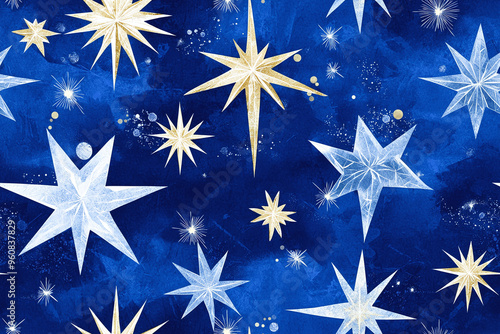 wallpaper, seamless, pattern, sparkling, snowflake, star, various, size, deep, blue, background, design, winter, celestial, glittering, elegant, festive, night, illustration, shimmering, vibrant, cold, magical, frosty, twinkling, art, decorative, cosmic, serene, bright, beauty