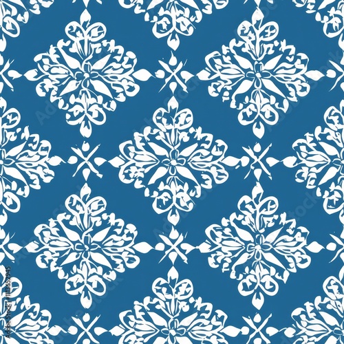 Seamless pattern of white snowflakes on a blue background