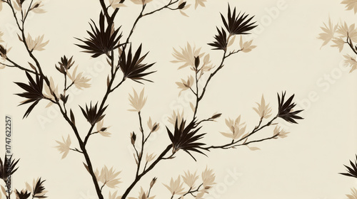 yucca, branch, sepia, silhouette, cream, botanical, flora, seamless, pattern, natural, tropical, foliage, elegant, minimal, soft, stylish, delicate, artistic, background, organic, harmony, decorative, naturalistic, modern, contemporary, structure, subtile, balance, detailed, refined, minimalistic, elegance, muted