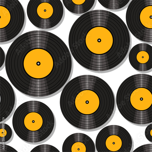 Seamless pattern print background with vinyl record disks vector illustration music wallpaper decorative artistic texture