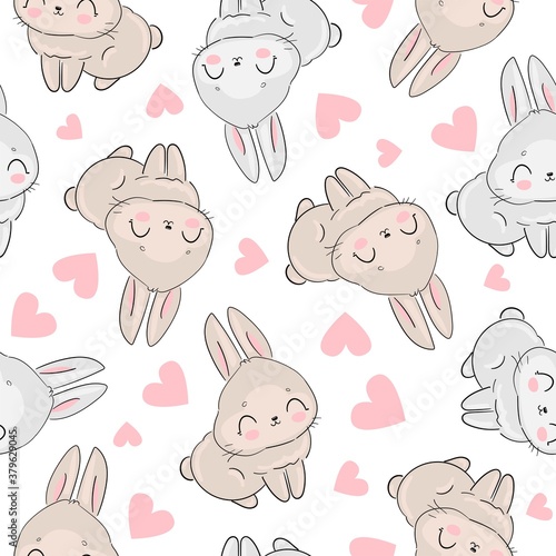 Seamless Pattern Rabbit and pink heart background bunny print design textile for kids fashion vector