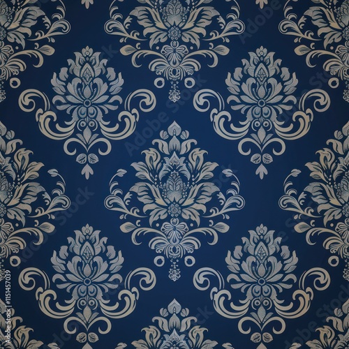 seamless pattern royal damask vintage middle aged rustic victorian classical luxury elegance dark blue
