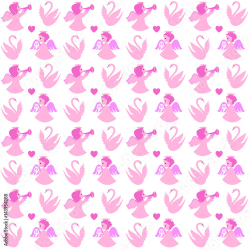 Seamless pattern with angels and swans