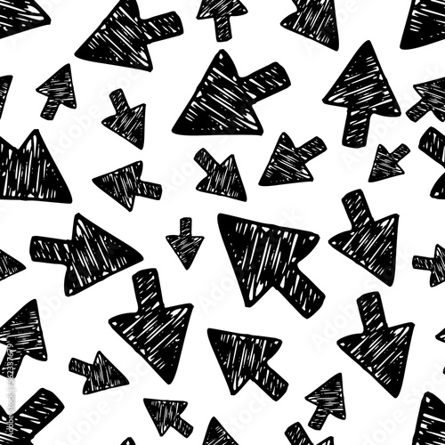 Seamless pattern with black hand drawn arrows