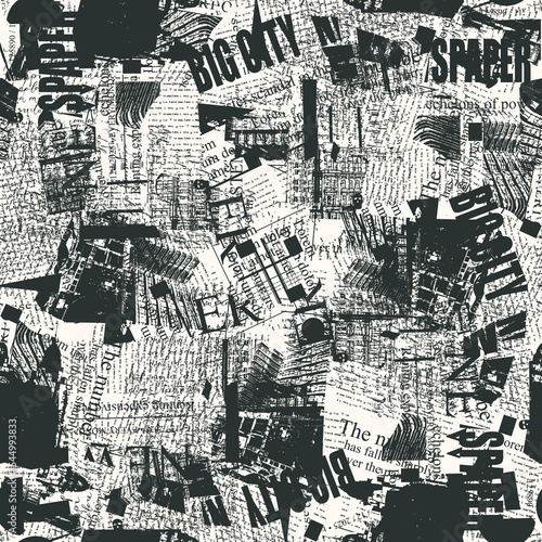 Seamless pattern with collage of newspaper or magazine clippings. Retro style vector background with titles, illustrations and imitation text. Suitable for wallpaper design, wrapping paper, fabric